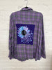 Repurposed Flannel Shirt with Flower + Puzzle Pieces Patch