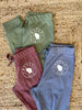 Recommended care instructions: Machine wash cold with like colors, inside-out, gentle cycle with mild detergent and similar colors. Tumble dry low or hang dry (we like to hang ours!). Do not dry clean. Cool iron inside-out if necessary, but avoid ironing over writing.